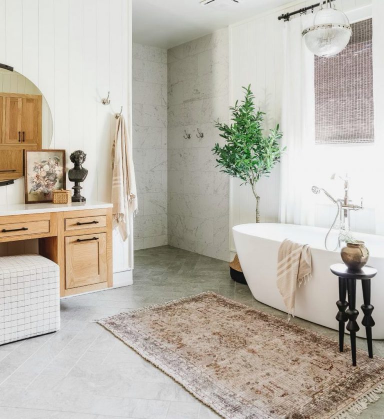Why add a rug to the bathroom? They add warmth and soften cold, hard surfaces.